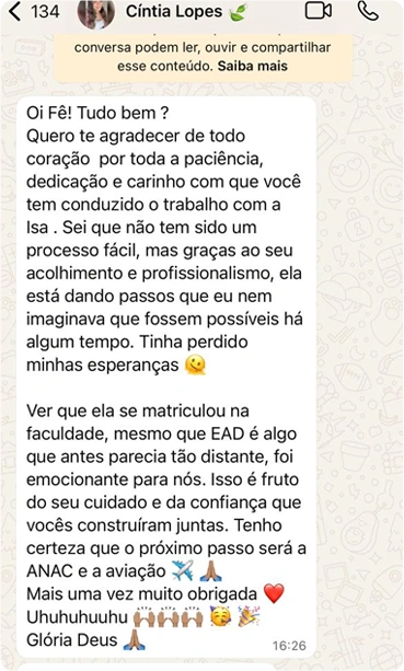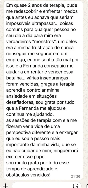 Sim! Oferecemos atendimento online com a mesma qualidade, empatia e sigilo dos atendimentos presenciais. Ideal para quem busca comodidade ou está em outras regiões.